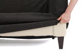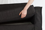 El Sofá es completamente desfundable. La tela es de apariencia lino y es suave y duradera ya que es 100% Poliéster. Muy lavable y resistente a las manchas. Los asientos están hechos con espuma de alta densidad de 30 kg. La estructura está hecha de madera de pino. Los cojines del asiento y respaldo son sueltos para poder quitar fácilmente la funda del sofá. Cada plaza mide 90 cm. Los cojines del asiento y respaldo vienen tapizados con la misma tela por los dos lados. Los cojines y funda tienen una costura plana que la hace verse muy actual. Sus patas son de madera de Pino. El Sofá se entrega con patas y la funda puesta. Sofá muy versátil que va con cualquier decoración. Fundas extras disponibles a la venta por separado.